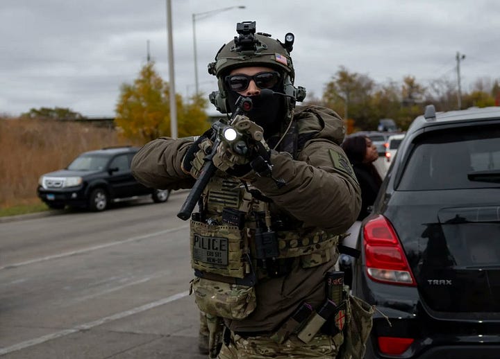 In October, DHS invited a Fox News reporter to accompany them on a dramatic nighttime raid of an apartment building in Chicago. Agents rappelled from a Black Hawk helicopter in a massive show of force. Residents were ripped from their beds, zip-tied, and held for hours.