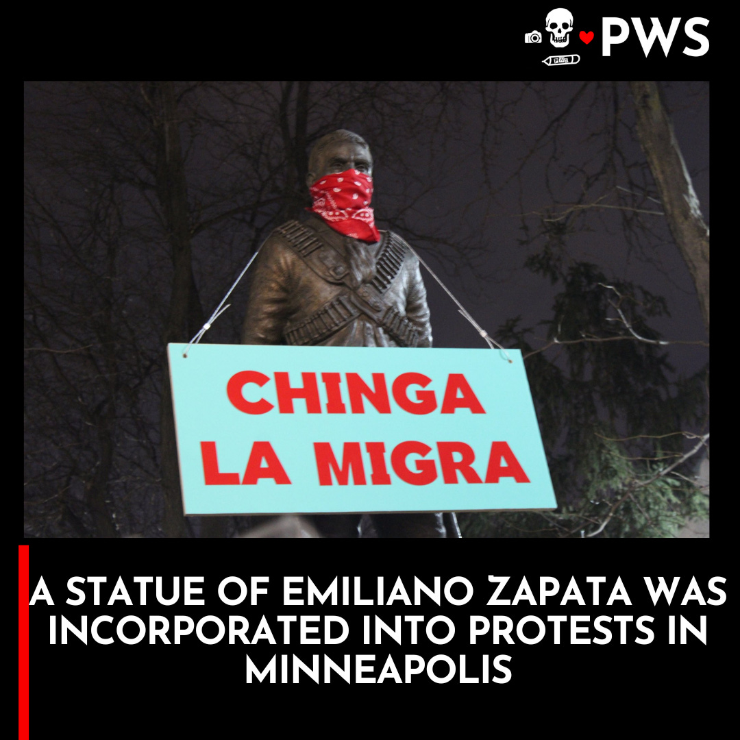 Hundreds of protesters threw dildos at ICE personnel on Friday outside of their staging area. One local resident decided to involve a statue of Mexican revolutionary Emiliano Zapata.