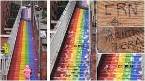 A few weeks later, a viral Twitter thread described how two men in central Bogotá attacked two gay men in the street, screaming at them for being “faggots” [maricas]. The women who witnessed the attack tried to defend them, but were attacked themselves. In one of the videos, the attackers’ faces are visible, so social media did its thing and, within a few days, they had been identified. Curiously, one of them belonged to a self-described neonazi group, which a few months before had painted its insignia on a staircase that had the LGBTQI flag painted on it, and which is known to support the groups that met at the forum in Bogotá.