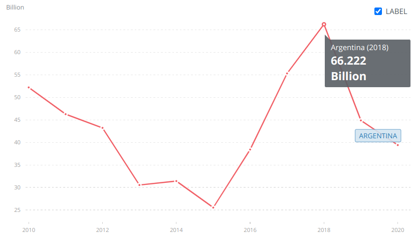 Argentina’s international reserves spiked to USD66.2 billion in 2018, the year of the loan, before plummeting to USD44.9 billion in 2019, according to IMF data. Macri recently said he had given some of the money to commercial banks so they wouldn’t leave the country. Critics immediately took this as an admission that he had violated the fund’s statutes by funding capital flight.